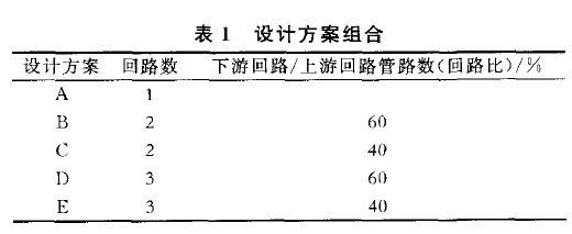 對(duì)于某一機(jī)組的冷凝器,設(shè)計(jì)了5種回路比 例,如表1所示。