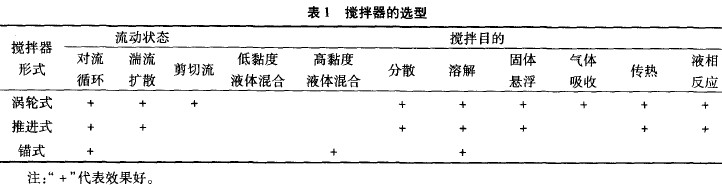 圖1反應(yīng)釜的攪拌形式為推進式和錨式的組合體。這種組合形式的缺點是不利于氣體的吸收。因為含氟聚合物的合成大多數(shù)就是氣體溶解到液相中,然后再進行聚合反應(yīng),所以推進式和錨式的組合形式會造成單體在液相中存在濃度差分布,所以隨擴散的進行聚合反應(yīng)是在不同的單體濃度下進行的。所以將推進式更換為渦輪式,各種攪拌形式優(yōu)點見表1。